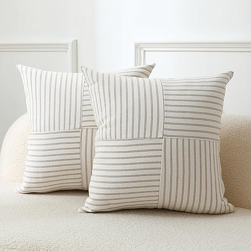 MYCDXE Prydnadskuddöverdrag 50 x 50 cm bondgårdskudde, set med 2 kaki randiga texturerade lappverk fyrkantiga kuddfodral för soffa soffa stol sovrum modern dekor, M013