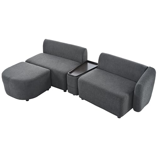 I0I&I0I Normal soffa med modern design, tresitsig soffa i mörkgrå teddy med fotstöd och schäslong – praktisk och stilfull! (288 x 73 x 67 cm)