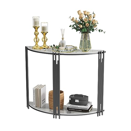 Halvmåne konsol bordshall: 2-nivåer vita marmorbord 100 x 30 x 78 cm halvcirkel entré hallbord sintrade sten entrébord modern soffa sidobord för veranda, vardagsrum, entré