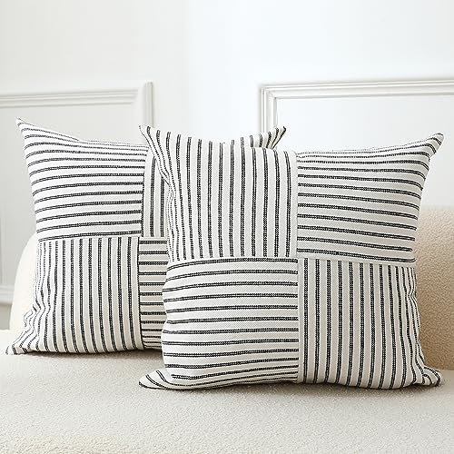 MYCDXE Prydnadskuddöverdrag 45 x 45 cm bondgårdskudde, set med 2 svarta randiga texturerade lappverk fyrkantiga kuddöverdrag för soffa stol sovrum modern dekor (M013)