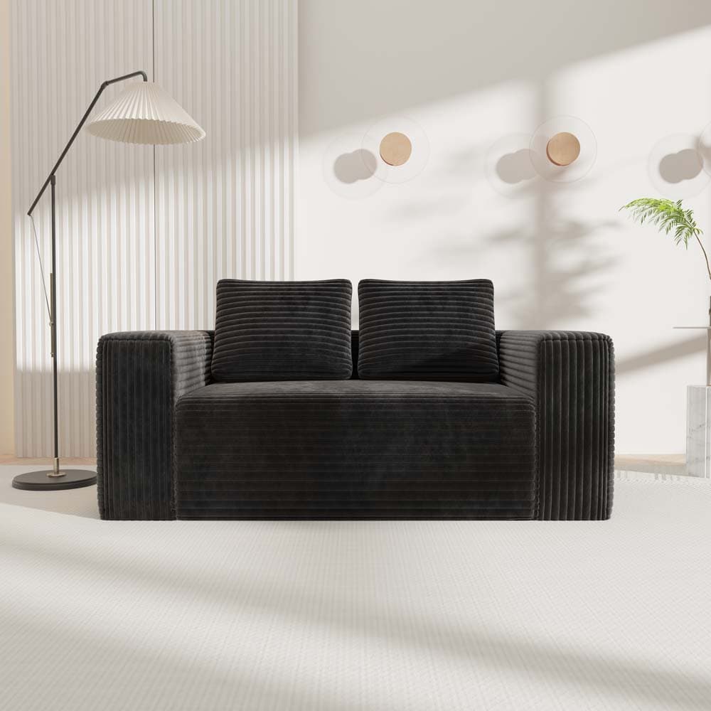 Djupsittande 2-sits golvsoffa utan montering, mjukt manchestertyg, modern soffa för liten lägenhet, sovrum eller kontor, svart