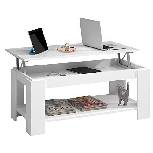 BAKAJI Soffbord Vardagsrum med upphöjd och behållare Soffa Vardagsrum Design Modern Träöppning Melamin Storlek 100 x 50 x 43 cm (vit)