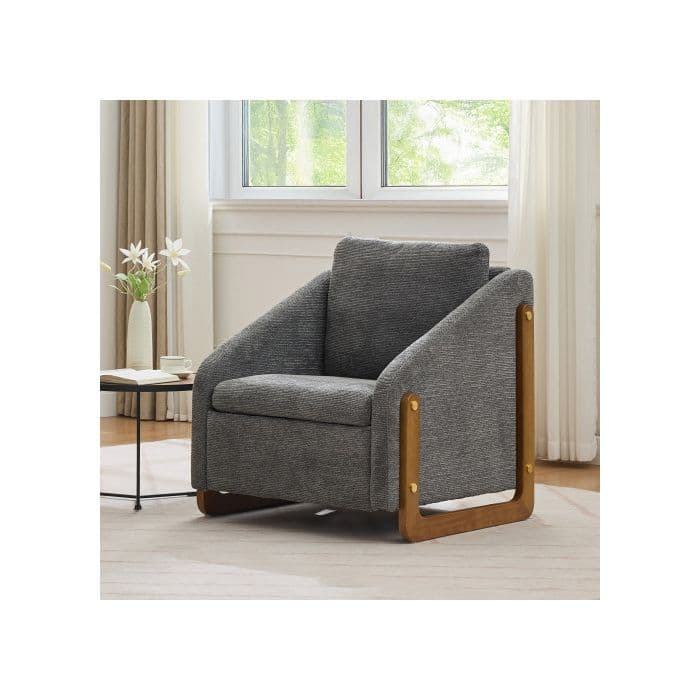 Meerveil Fåtölj soffa massivt träben modern fåtöljstol för sovrum vardagsrum balkong kontor (gul)