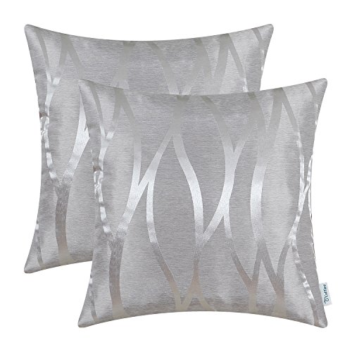 Förpackning med 2 CaliTime-kuddfodral Fodral för soffa Soffa Heminredning Modern glänsande & matt kontrast Abstrakt vattenvågor Linjer geometriska 18 X 18 tum Silvergrå