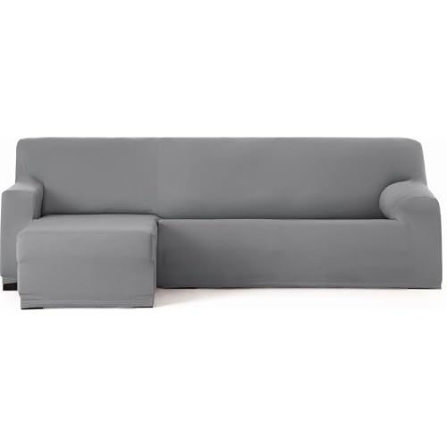 ECOMMERC3 | Överdrag för soffa schäslong 240 cm validerat för schäslong lång höger och vänster arm - justerbart sofföverdrag schäslong grå