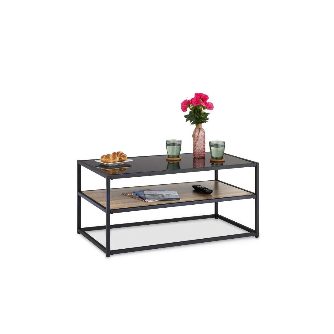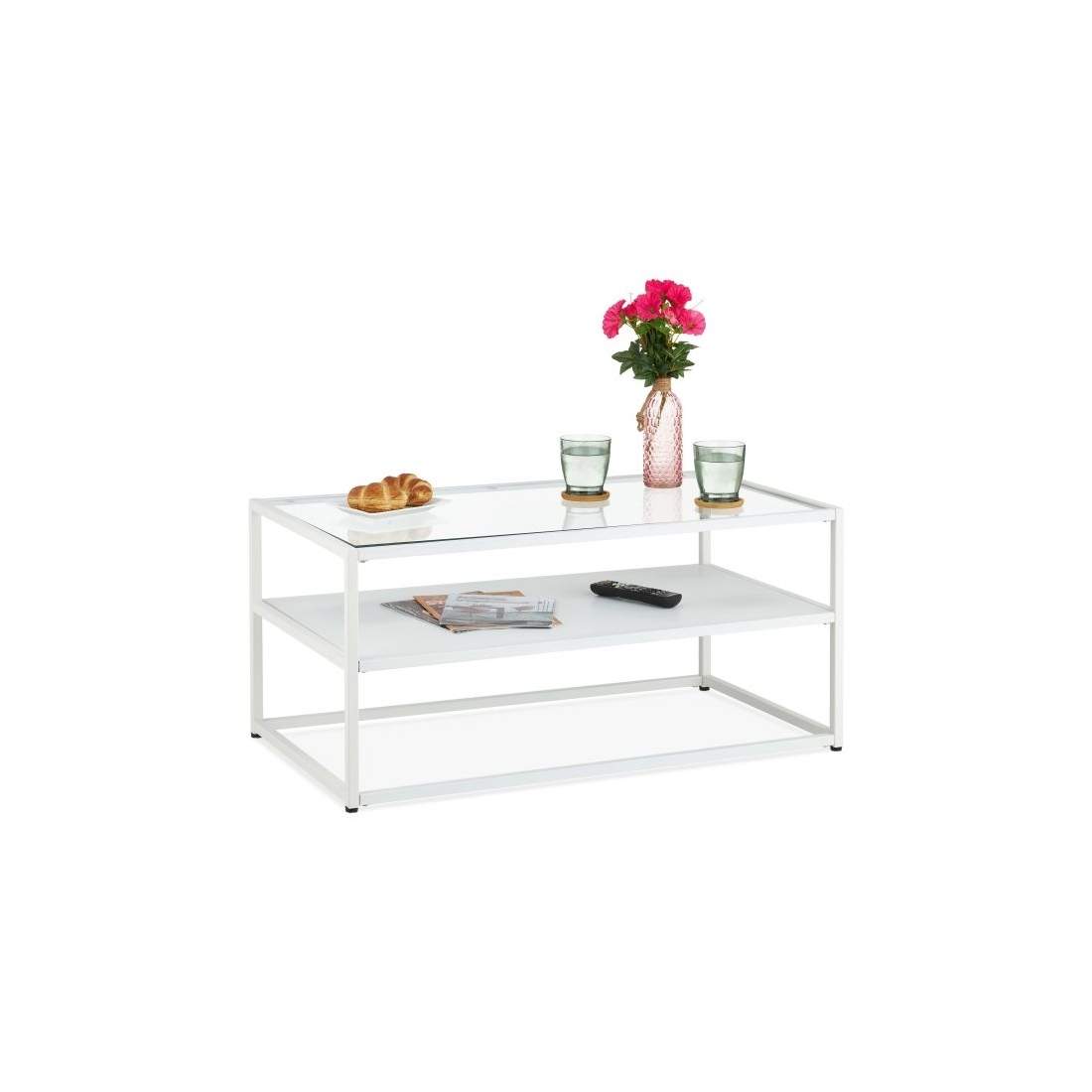 ASAGLE LCT072W13 Soffbord med glasskiva och stort förvaringsutrymme för vardagsrumssoffa enkelt