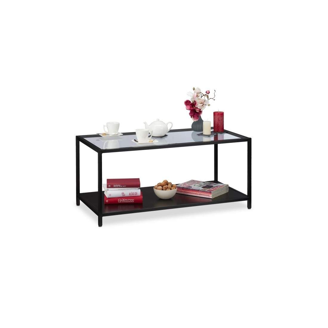 vidaXL Soffbord med glasskiva svart 98,5x50x45 cm stål 846044