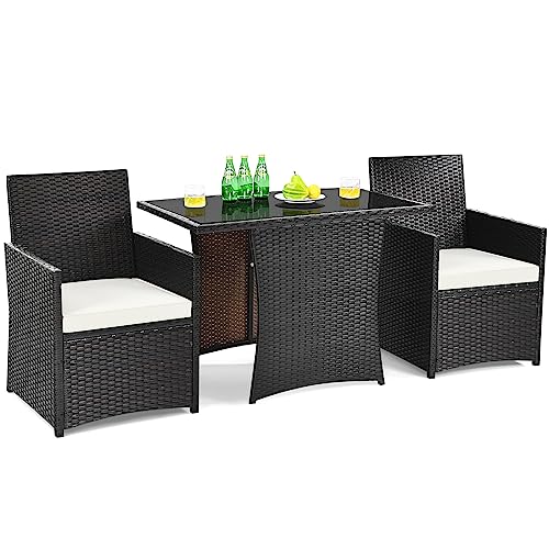 KOMFOTTEU Rattan Utomhus Trädgårdsset, Trädgårdsset, Trädgårdsmöbelset 1 Soffbord med härdat glasskiva, upp till 75 kg, 2 fåtöljer med kudde kapacitet upp till 180 kg
