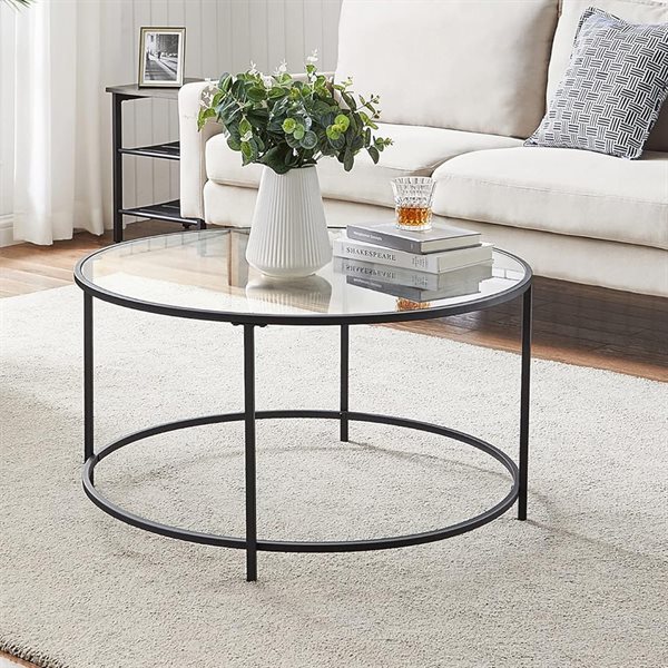 Runt uteplats soffbord med härdat glasskiva & Metallram Fällbart sidobord Svart