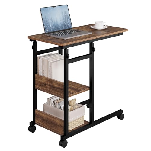 SogesHome Laptopbord, Höjdjusterbart Bord Med Hjul, 48 cm x 30 cm, PC-Bord, Sidobord för Kaffe/Snack/Förvaring, Soffbord för Hemmet