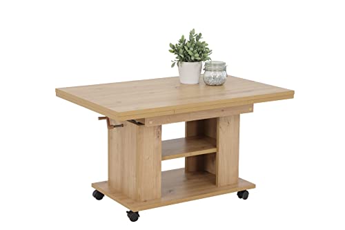 Apollo funktionellt soffbord Jakob, träutseende melaminbelagt, ek, höjdjusterbart 51–61 cm, utdragbart 90–142 cm, på hjul