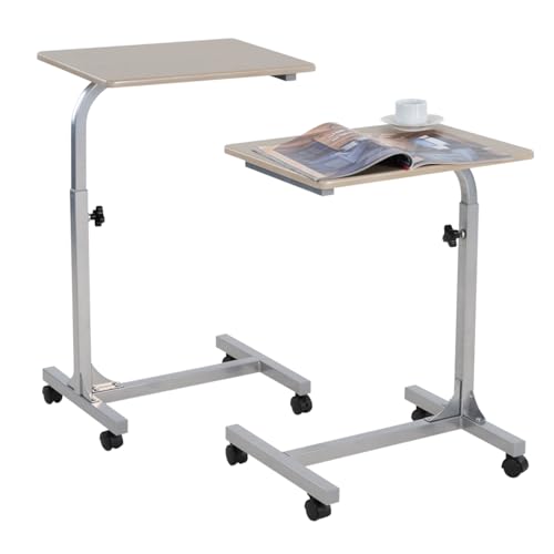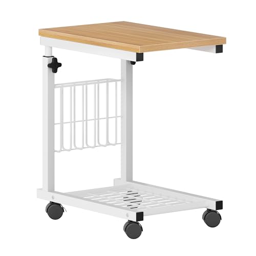 Fetcoi Sidobord, säng, laptopbord, datorbord, justerbar höjd med hjul, inlärning, skrivbord, sängbord, frukostbord, nattduksbord, mobil soffbord (vit)