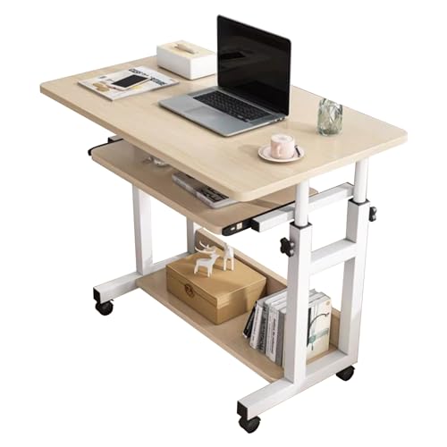 Rullande Datorbord, Litet Justerbart Skrivbord, Mobilt Soffbord Med Utdragbar Tangentbordsfack och Förvaringshylla, Datorbord med Hjul - for Hemmakontoret ( Style : White , Size : 80*45cm/31.5*17.7in
