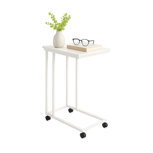 C Shape Sidobord Soffbord med Hjul Soffbord Bärbart Soffbord för små ytor 45 x 35 x 58 cm Vit