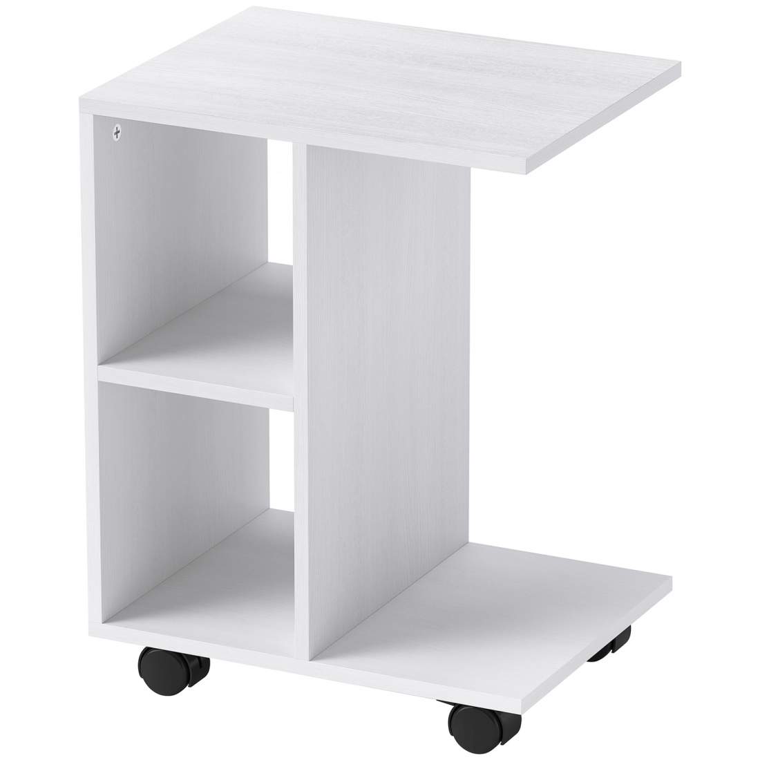C-format sidobord med öppna hyllor och låsbara hjul Platsbesparande soffbord