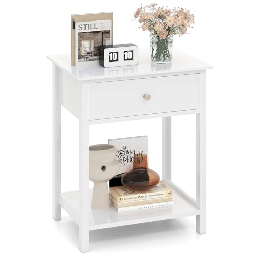 GIANTEX Nattduksbord med låda, nattduksbord, nattkonsol med öppen hylla, soffbord, hallbord, vardagsrum, sovrum (vit)