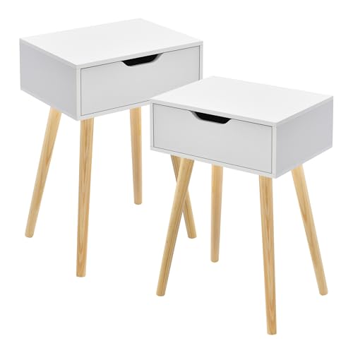 Yaheetech 2 x Nattduksbord, Sidobord Med Låda och 4 Träben, Skandinaviskt Soffbord av Trä för Sovrum/Vardagsrum, Vitt