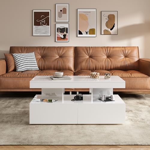 YNYHTER Vitt Rektangulärt Soffbord med Förvaring, Lådor och Modernt Kaffebord för Vardagsrum (Vit)