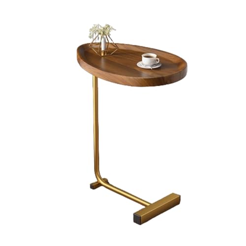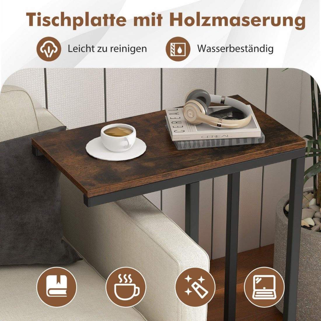 Sidobord C-format soffbord med metallram soffbord för vardagsrum rustikt brunt