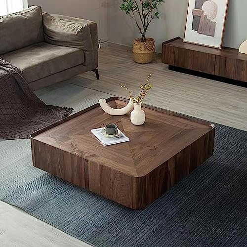 WestUx Lyxigt modernt fyrkantigt soffbord, rustikt vintage svart valnöt mitten av århundradet mittbord med förvaring för vardagsrum, sovrum, kontor, A, 80 cm