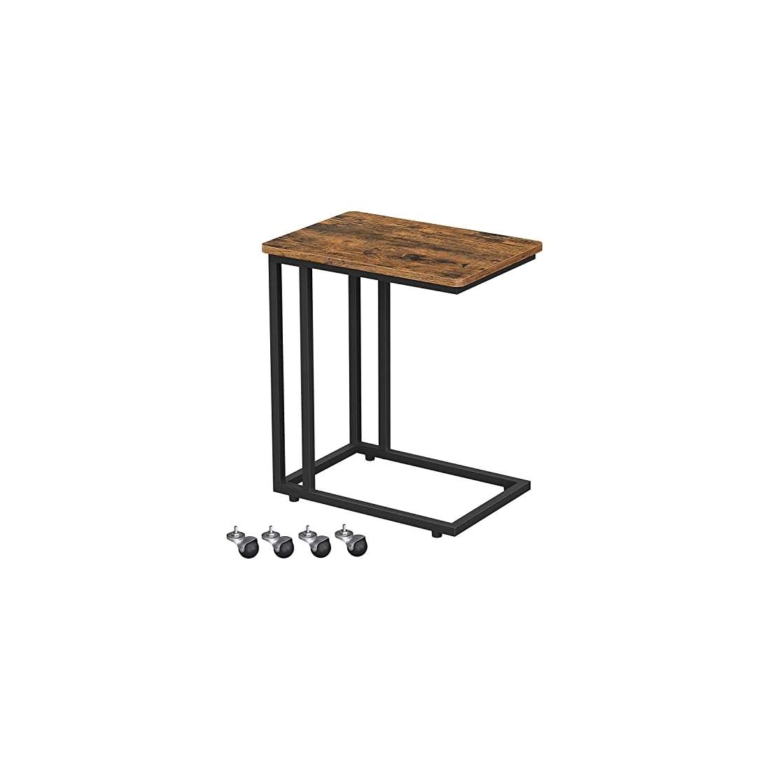 HOOBRO C-format sidobord, vikbart soffbord, litet bord, sängbord, laptopbord för soffa, vikbart sidobord små soffbord för vardagsrum, sovrum, rustikt brunt och svart EBF29SF01