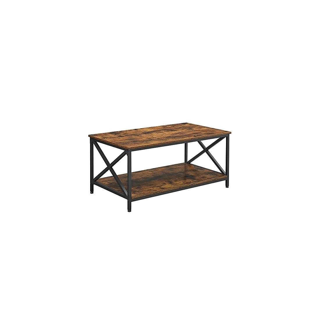 COSTWAY Soffbord, Soffbord med Hylla, Vardagsrumsbord, Salongbord för Vardagsrummet, 110 x 60 x 48 cm (rustikt brun)