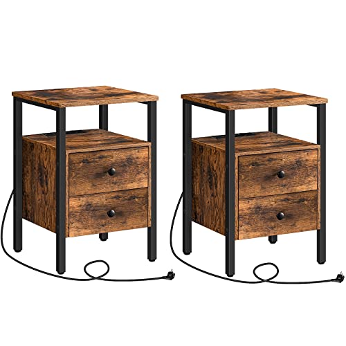 HOOBRO Sängbord med laddningsstation, set om 2, sidobord, soffbord med 2 lådor, soffbord med USB-anslutningar för vardagsrum, sovrum, 40 x 40 x 61 cm, vintage EBF43CBZP201