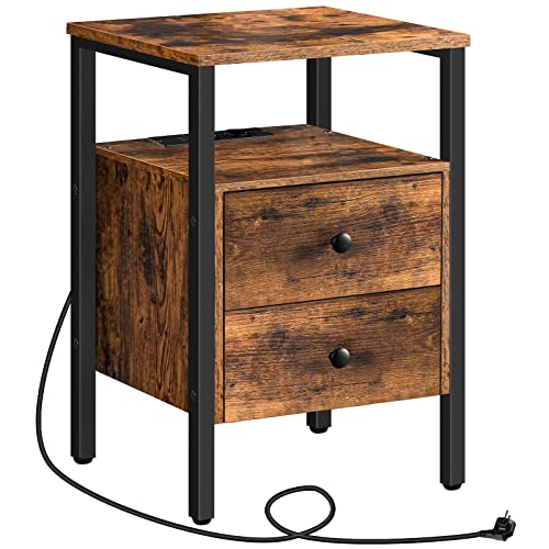 HOOBRO Nattbord med laddningsstation, sidobord, soffbord med 2 lådor, soffbord med USB-portar för vardagsrum, sovrum, modernt, 40 x 40 x 61 cm, vintage EBF43CBZ01G2
