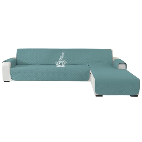 Ystyle 100% Vattentätt Sofföverdrag L Formad 2 Sits(L 210 cm), Reversible Höger/Vänster Universal Soffskydd Peninsula, Chaise Longue Sofa Protector Reptåligt Fläckbeständigt, Gråblå