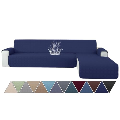 Ystyle Vattentätt Sofföverdrag Med 3-Sits Halvö (L 255 Cm) Hörnsoffa Höger/Vänster Universal Vändbart, Sofföverdrag Schäslong Reptåligt Fläckbeständigt, Mörkblå