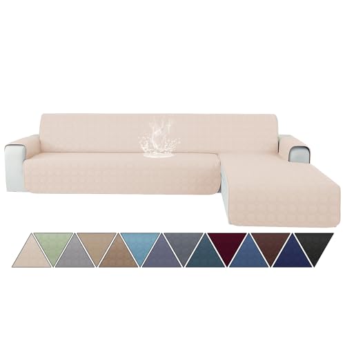 Ystyle 100% Vattentätt Sofföverdrag L Formad 4 Sits(L 280 cm), Reversible Höger/Vänster Universal Soffskydd Peninsula, Chaise Longue Sofa Protector Reptåligt Fläckbeständigt, Beige