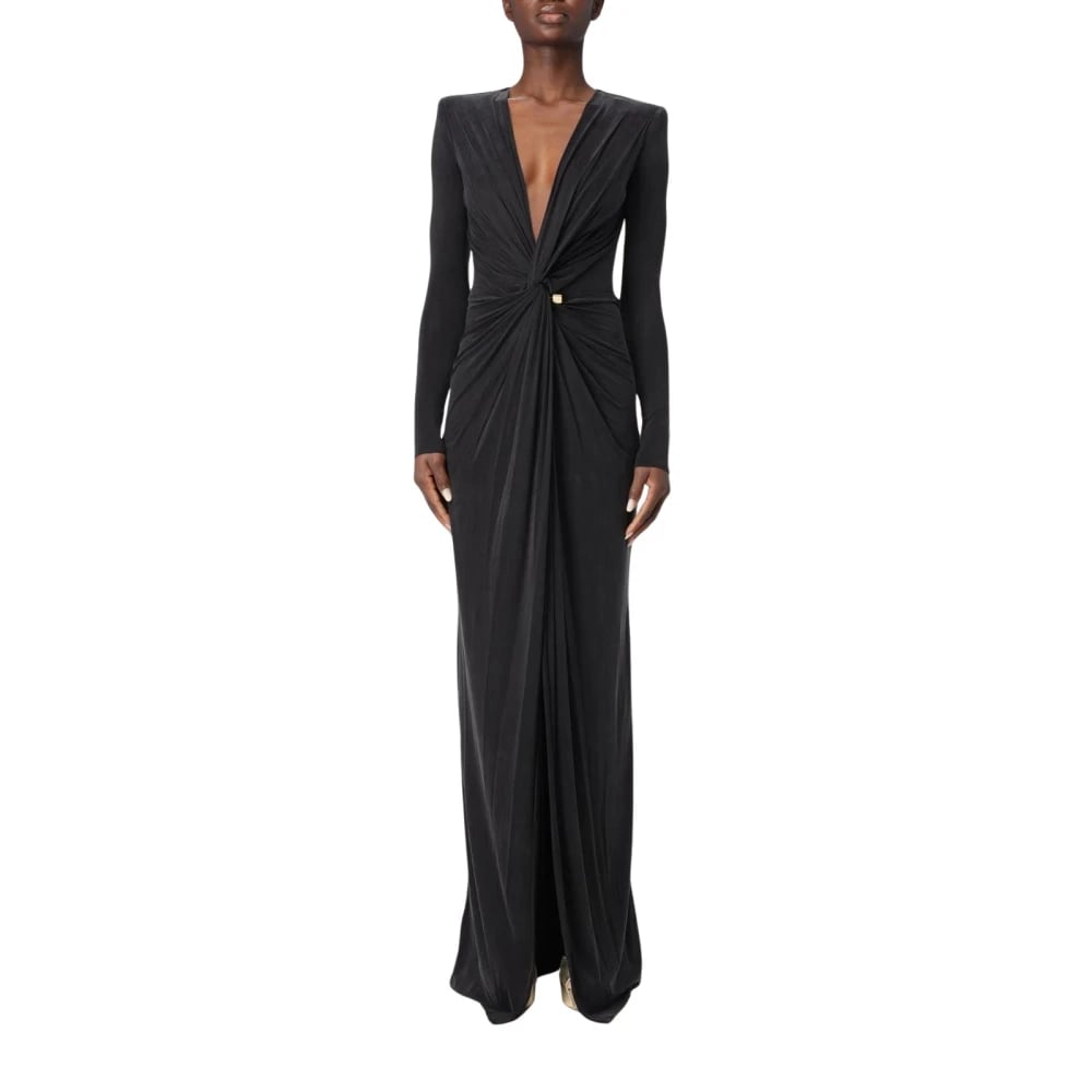 Elisabetta Franchi, Klänningar , Dam, XS, Sofistikerad Maxiklänning med Drapering
