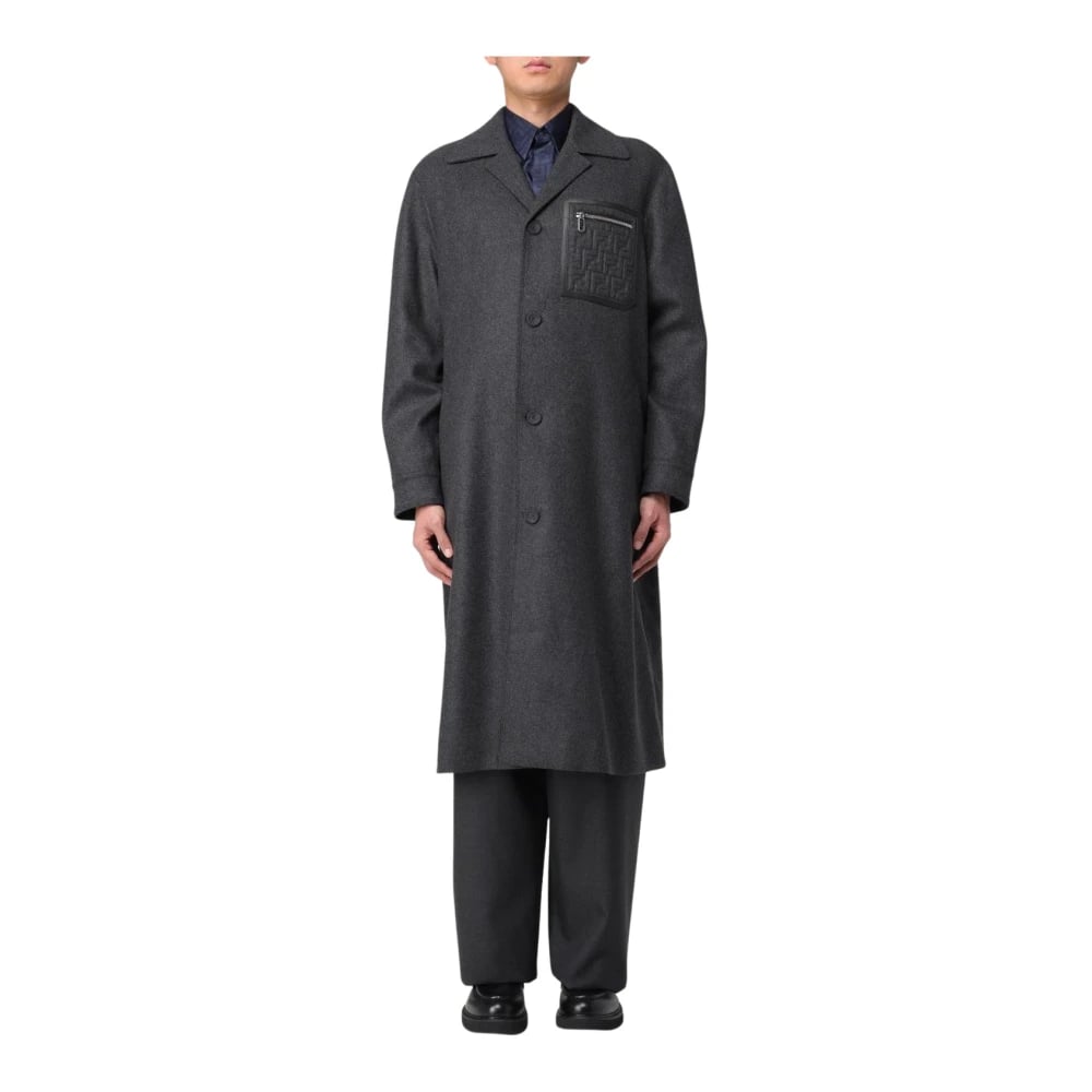 Fendi, Kappor & Rockar , Herr, L, Sofistikerad Lång Ullkappa