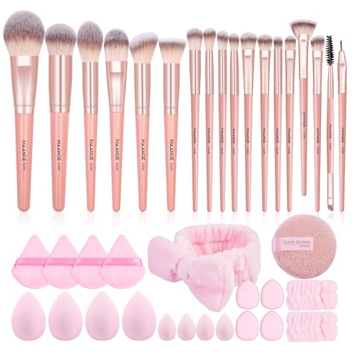 MAANGE Set med 38 st Premium Syntetiska Sminkborstar, Mjuk Foundation, Pulver, Eyeliner, Ögonskugga - Professionellt Sminkverktygsset (Rosa)
