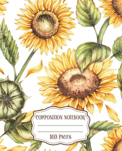 Composition Notebook College Ruled – Sunflower Vintage Botanical Illustration 160 Pages: Flora Aesthetic Journal for Girls, Teens, Women – Wide Lined, Soft Matte Cover