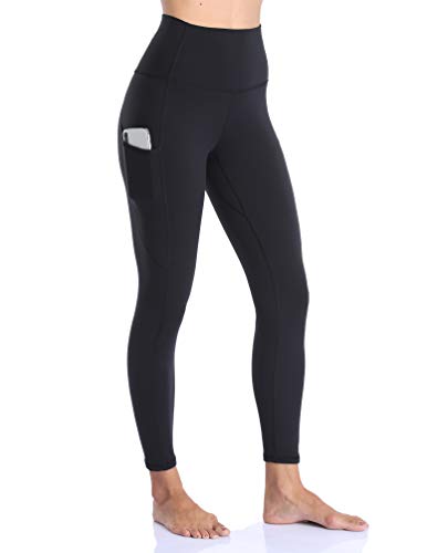 YUNOGA Women's High Waist Buttery Soft Athletic Yoga Pants 25" Inseam Leggings with Pockets (L, Black)