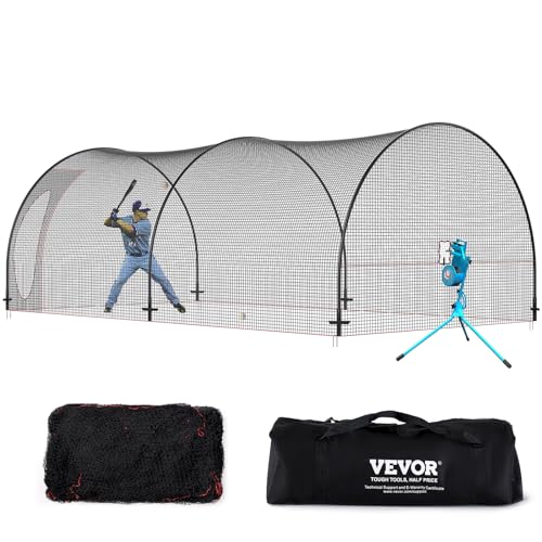 VEVOR Basebollbattingbur, softboll och basebollslagburnät och ram, bärbart burnät med bärväska, kraftig sluten pitching bur, för slagtåg på bakgården, slagträning, 22 fot