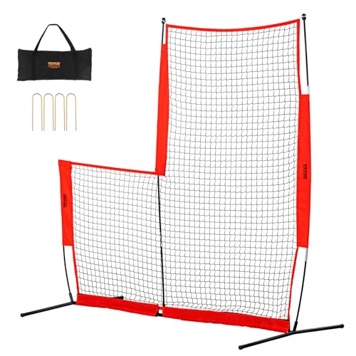 VEVOR L-skärm baseball för slagbur, 2,1 x 2,1 m baseboll och softboll säkerhetsskärm, kroppsskydd, bärbar slagskärm med bärväska och markinsatser, basebollnät för skydd av kannor