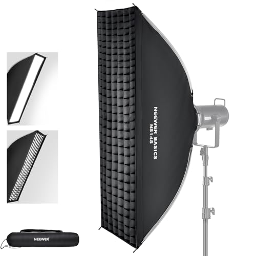 NEEWER Basics Rektangulärt softbox-kit, 12 tum x 47 tum, snabb borttagning av Bowens-ljusdiffusor, kompatibel med Godox, puture-kompatibel, foto- och videostudiobelysning, NS14S