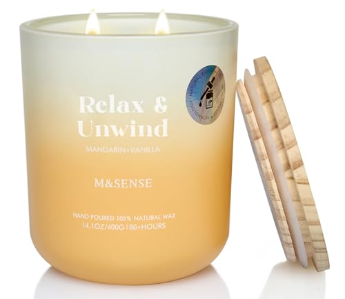M&SENSE doftljus, mandarin vanilj doftljus i glas, 400 g stor sojaljus med två vekar, 80 h brinntid, aromaterapi-ljus för yoga, spa, meditation. Present till flickvän, fru, mor