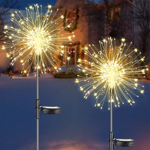 Redefun Utomhus sol fyrverkerier lampor 120 LED starburst lampor koppartråd trädgårdslampor vattentäta gångstigslampor för landskap gräsmatta trädgård uteplats fest bröllopsdekorationer (2 st)