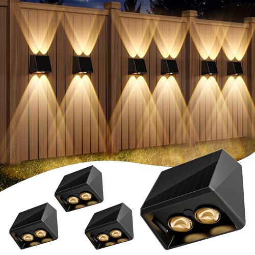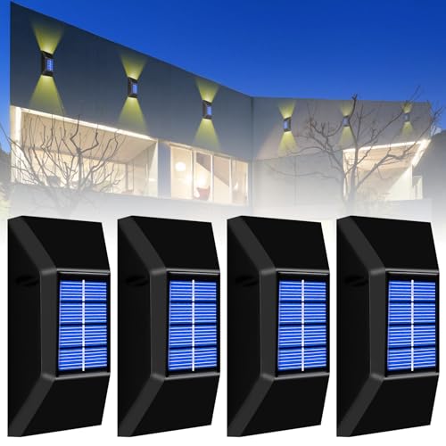 Utomhus Sol VäGglampa, 4 Stycken Varmvita Solcellslampor, IP67 VattentäTa Utomhuslampor FöR VäGgar I TräDgåRden Veranda DäCk Trappa TräDgåRd BakgåRd Access