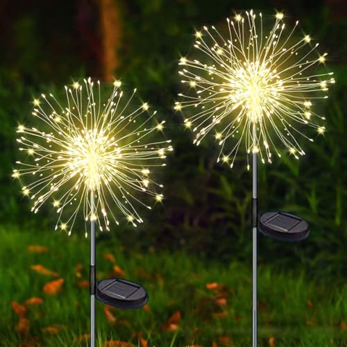 Redefun Utomhus sol fyrverkerier lampor 120 LED starburst lampor koppartråd trädgårdslampor vattentäta gångstigslampor för landskap gräsmatta trädgård uteplats fest bröllopsdekorationer (2 st)