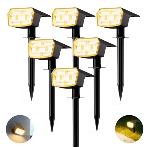 HIBOITEC 59 LED solcell för utomhusbruk, 3 000 K varmt ljus solstrålare, 6 stycken, IP65 vattentät utomhus ljuskedja sol, justerbar ljusstyrka solar trädgårdslampor för utomhusbruk, gård, väg