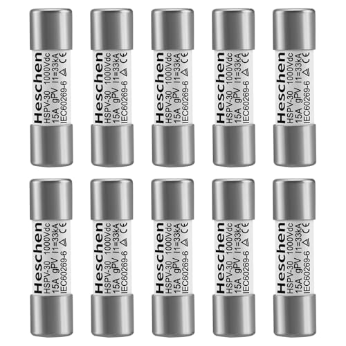 Heschen Solar DC1000V PV-säkring, fotovoltaiska säkringar, gPV-typ säkringslänk, HSPV-30, 10 x 38 mm, 15A 1000VDC, I1 33kA, för sol-, PV-systemskydd, 10 st