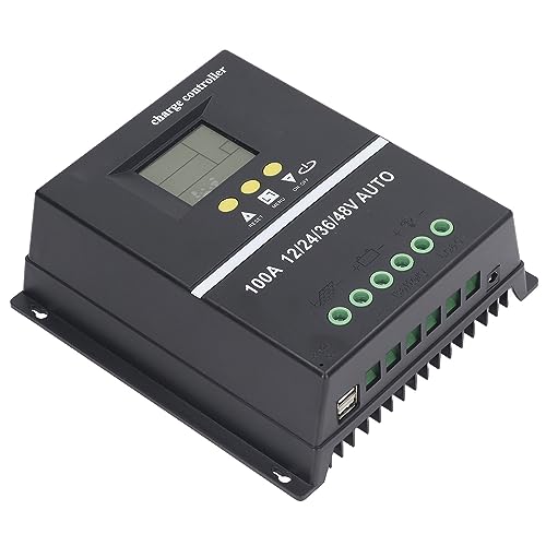 Fockety MPPT Solar Charge Controller, 12V/24V/36V/48V Solar Panel Charge Controller Intelligent regulator med LCD-skärm, Solar Panel Controller för litium, förseglade, gel och översvämmade(100A)