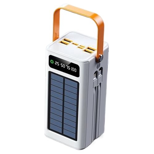 Solar Battery Bank, 120W External Power Pack, 50000mAh Portable Charger with Built-in Cables, LED Light, Ideal for Mobile Devices, Road Trips, Hiking, Camping, Fishing, Black/White