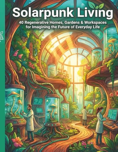 Solar Punk Living: A Coloring Book for Adults & Teens: 40 Regenerative Homes, Gardens & Workspaces Imagining a Sustainable Eco Friendly Future