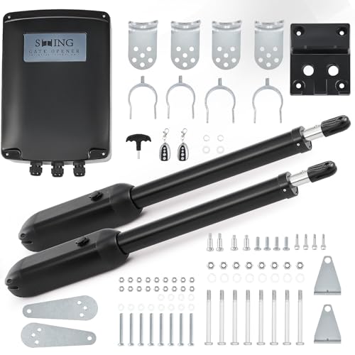 CO-Z 2-dörrars slaggrindmotor 124 W svängbar grind-automatisering med 2 fjärrkontroller för dörrar upp 1 000 kg 6 m automatisk slagport kompatibel med solbatteri