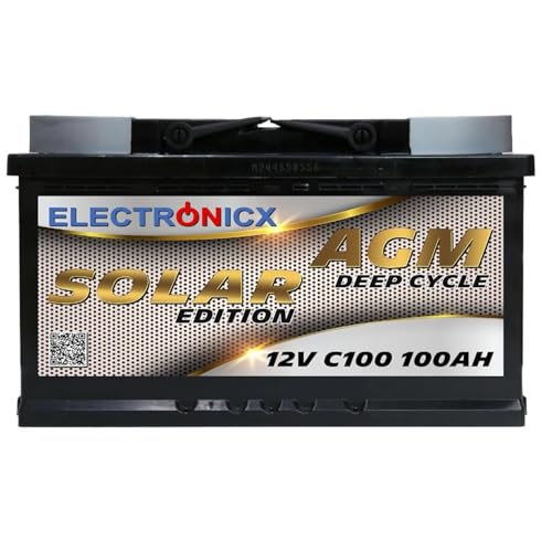 Electronicx AGM SOLAR Försörjningsbatteri 12V 100Ah-100 ah Underhållsfritt, förslutet Deep Cycle-batteri med pluspol till höger-Solbatteri för solcellssystem,cykeltåligt och idealiskt för fritidsbruk